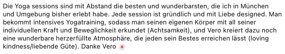 Es gibt nicht das „eine Yoga“, sondern zahlreiche verschiedene Richtungen von Yoga. Hinzu kommt, dass jeder Yogalehrer seine ganz eigene Art hat Yoga zu unterrichten. Wenn du mehr Informationen haben möchtest, was meine Stunden so besonders macht, gehe zu Impulse. Wenn du mehr über mich erfahren möchtest und checken möchtest, ob meine Lebensphilosophie Dich anspricht, dann lese gerne mehr über mich.